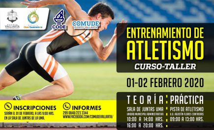 Para quienes cumplen con el total de las horas del curso-taller, se les expide la constancia con valor curricular, e inicia el sábado 1 de febrero en la Unidad Municipal Administrativa (UMA), a partir de las 10:00 horas, con los ponentes: Ramón Márquez García, con el tema “Salidas y carreras planas”; Juan Ramón Frías Ortega hablará de “Enseñanzas y trabajo de vallas”; José Guadalupe Sánchez Delgadillo dialogará sobre “Control y evaluación del entrenamiento”.