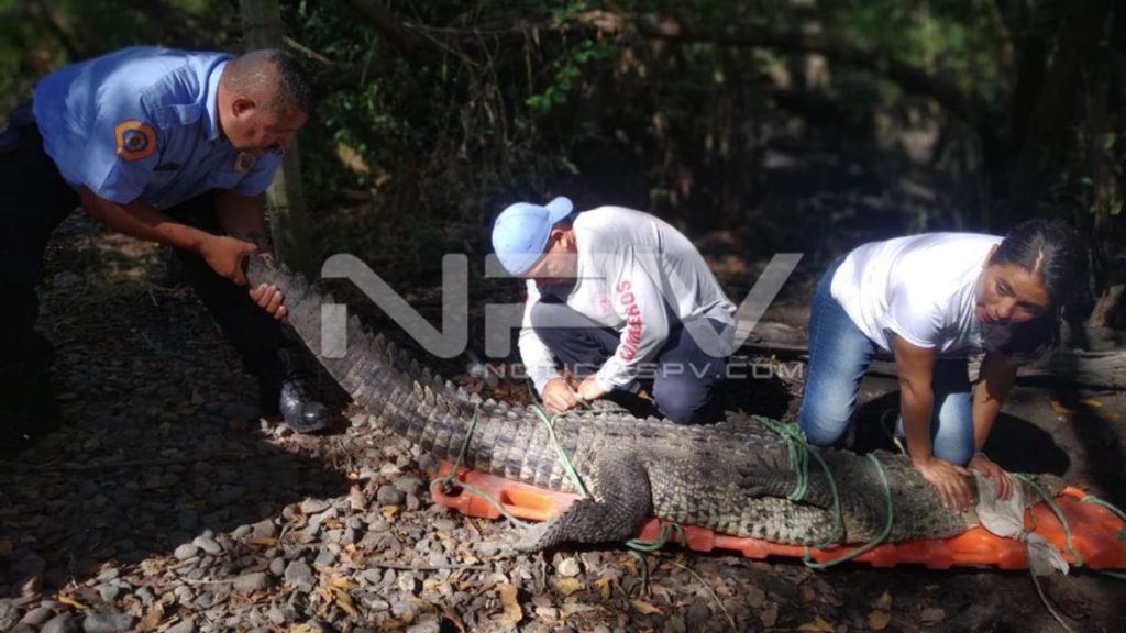 Finalmente, el cocodrilo fue revisado y marcado por un biólogo, para posteriormente ser reubicado a la laguna La Cortada de Nuevo Vallarta.
