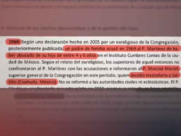 Hoy, 6 meses después publicaron el informe final de la investigación, presentan el historial de denuncias contra el Padre Martínez, que inician en 1969 y narran cómo el fundador y entonces Superior de los Legionarios, Marcial Maciel, las conoció y cómo las encubrió, cambiando al Padre Martínez a escuelas en Saltillo y Cancún.
