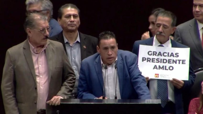 “¡Hasta siempre, presidente!”. La bancada del Partido del Trabajo subió a la tribuna con carteles en los que se leía “¡Gracias, presidente AMLO!” y desplegaron una manta donde expresaron: “¡Hasta siempre, presidente! El coordinador petista, Reginaldo Sandoval, resaltó que Andrés Manuel López Obrador, “y estamos convencidos de ello, es el mejor presidente de México”.
