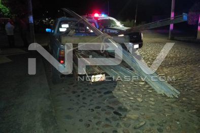 Policías Municipales, aseguraron camioneta que traía herramientas y tubos para un invernadero que le habían robado de su rancho a un elemento de la Dirección de Seguridad Pública Municipal de Bahía de Banderas.