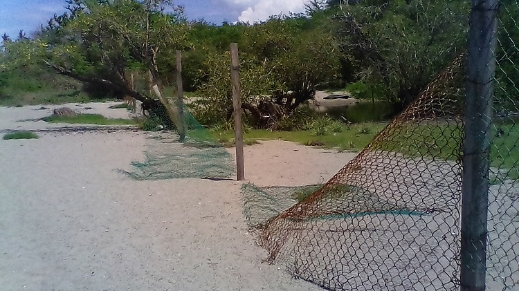 Al caminar por el sitio se observó como la división que existe para evita el cruce de humanos, hoy simple y sencillamente ya no existe, ya que la red metálica está tirada en el suelo, por lo que cualquiera puede pasar fácilmente a pescar o pasear por el manglar, con lo que arriesgan sus vidas.