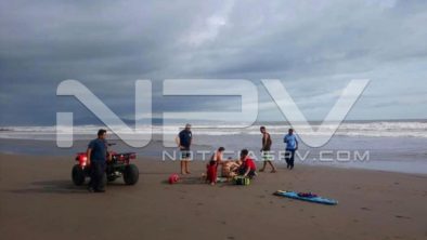 Elementos de Protección Civil ciudadana y Bomberos, asignados a la vigilancia en la zona de San Blas, lograron el rescate de dos menores de edad y una femenina adulta, los cuales estaban siendo arrastrados por una ola de retorno en la playa El Borrego.