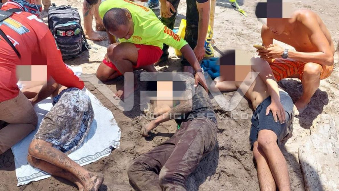 De inmediato, el personal en conjunto acudieron al lugar llevando a cabo los trabajos para extraer a un joven de 15 años, uno de 21 años y uno más de 16 años, originarios y vecinos de Las Vegas, mismos que fueron impactados por una ola, la cual los jaló mar adentro.