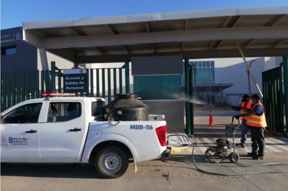 Las medidas de prevención ante la pandemia del COVID-19 en Bahía de Banderas, se han reforzado conforme avanzan sus fases, por lo cual la desinfección de áreas públicas en parques, jardines, paradas de camiones y equipamiento urbano, se amplió a los centros de salud y hospitales de nuestro Municipio.