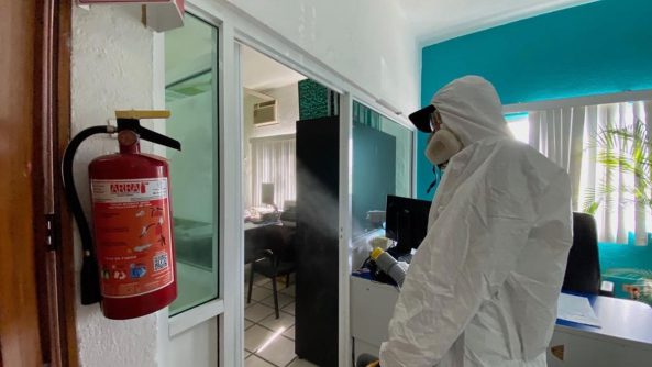 La desinfección se realizó en las instalaciones centrales de la institución en la colonia Lázaro Cárdenas, además de las oficinas de Atención a Usuarios en El Coapinole, Pitillal Centro e Ixtapa; centro de recaudación en Las Palmas y el Almacén General.