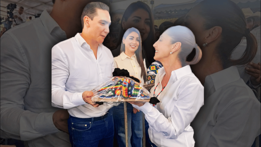 El presidente municipal de Bahía de Banderas, Héctor Santana, entregó un presente a la presidenta de México, Claudia Sheinbaum, durante su reciente visita a Bucerías.