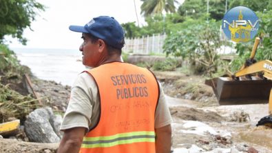 Personal del Ayuntamiento de Bahía de Banderas se encuentran en el lugar para ayudar en los trabajos de limpieza, luego de que varias calles quedaron llenas de lodo y algunas viviendas se metió el agua, según datos de los mismos afectados.