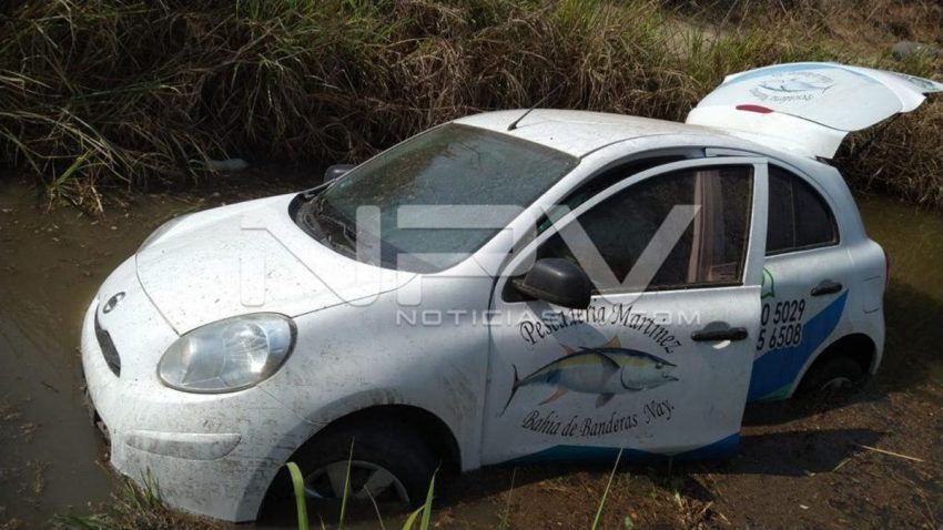 La tarde este jueves se registró un accidente sobre la carretera del camino viejo de Bucerías a Valle de Banderas, a la altura del kilómetro 07 + 500, en donde un auto propiedad de una pescadería, se quedó sin control y cayó a un canal de riego.