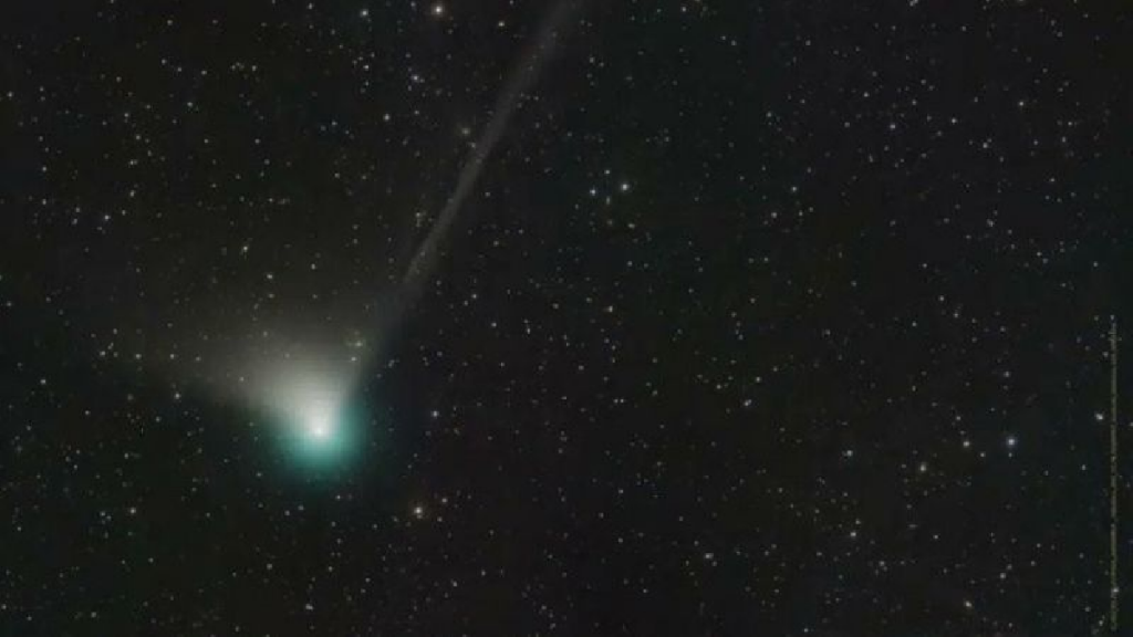 El tinte verde proviene del carbono en la nube de gas que rodea el núcleo. El cometa fue descubierto en marzo del año pasado por los astrónomos que utilizan la Zwicky Transient Facility, una cámara de campo amplio del Observatorio Palomar de Caltech. Su nombre oficial es C/2022 E3 (ZTF).