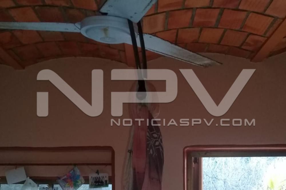Informan también los elementos que en la habitación se aprecia que en el ventilador de techo se encuentra colgado un candado de bicicleta de color negro con interior de alambre, el cual tiene atada una sábana, de la que manifiesta su hermana de la joven, que la encontraron suspendida y amarrada del cuello y que también estaba atada al candado y al abanico de donde la bajaron para tratar de salvarle la vida, pero, fue demasiado tarde porque la fémina ya no presentaba signos vitales.