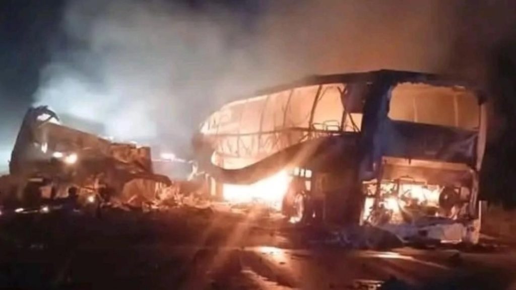 Campeche, Campeche. La cifra de fallecidos en el choque e incendio de un autobús de pasajeros y un tractocamión ocurrido este sábado por la madrugada, podría llegar a 40 y la tarea de identificación de los cuerpos se dificulta debido a que la mayoría quedaron calcinados casi en su totalidad.