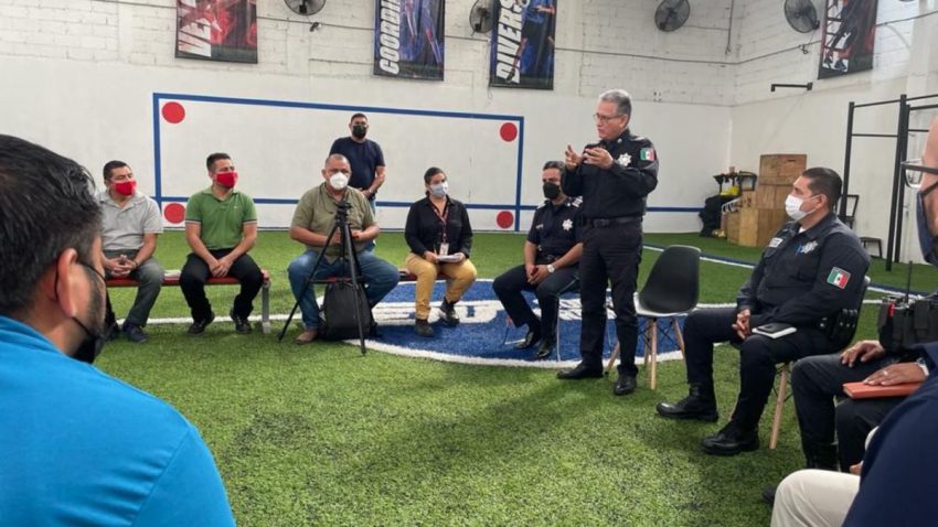 Bahía de Banderas, Nayarit, a 1 de febrero de 2022.- Generar una comunicación directa entre el gobierno municipal y los empresarios fue el motivo de la reunión que sostuvo la Dirección de Seguridad Pública con un grupo de locatarios y dirigentes de cadenas de conveniencia de Nuevo Vallarta.