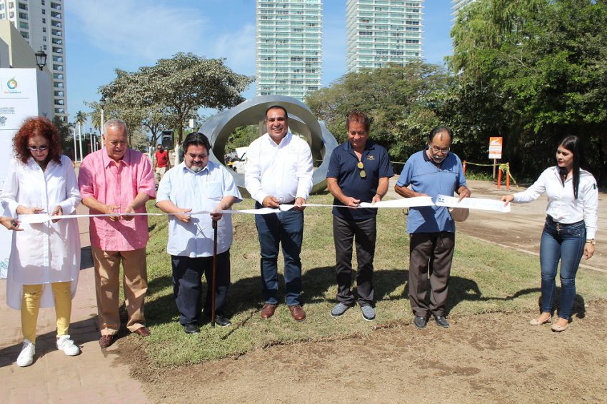 El patrimonio urbano artístico de Puerto Vallarta, continúa enriqueciéndose al sumarse este viernes de manera oficial, 5 nuevas esculturas de gran formato, las cuáles fueron inauguradas por el presidente municipal, Arturo Dávalos Peña, el rector del Centro Universitario de la Costa, Marco Antonio Cortés Guardado, el empresario Fernando González Corona; Suny Ramírez, coordinadora del II Foro Internacional de Escultores y el artista tapatío Óscar Zamarripa.