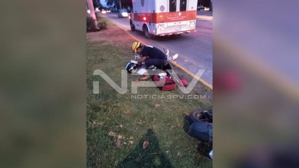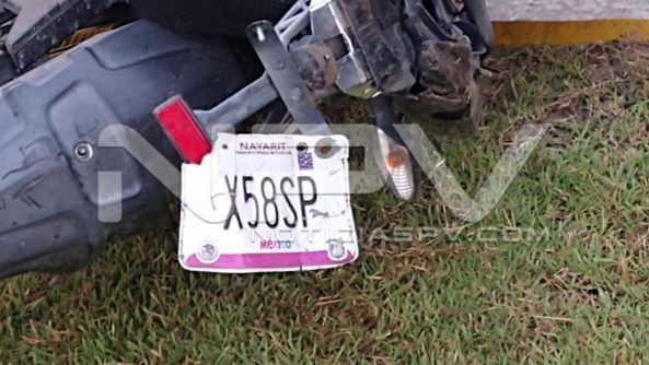 El accidente ocurrió en el Boulevard Riviera Nayarit frente al fraccionamiento Las Ceibas * El conductor de la moto perdió el control y se estrelló de cabeza en el machuelo de la jardinera central