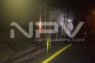 El reporte lo recibieron en el Centro de Atención Ciudadana, donde los alertaban de la volcadura del tráiler y de una persona fallecida, por la Autopista antes mencionada, donde se dio a conocer que circulaba dicho camión que iba cargado con sandía, con dirección a Jala y al llegar al kilómetro 41, en una curva peligrosa, el conductor pierde el control y terminó volcándose con el pesado vehículo, quedando sobre su costado izquierdo, encima de una barrera de contención, donde lamentablemente terminó prensado dentro de la cabina.