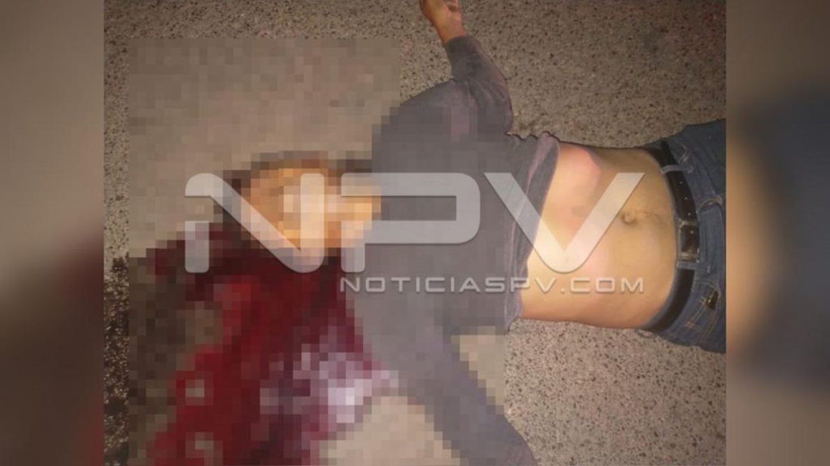 La persona identificada con el nombre de Hipólito Olivarría Falcón, de 34 años de edad, vecino de la localidad de La Mojonera, en el municipio de Ruiz, Nayarit, quien viste pantalón de mezclilla azul, camisa color gris manga larga, tenis gris y cinto color negro, de pelo corto y con bigote, se aprecia tirado sobre la cinta asfáltica con los brazos abiertos en posición de cúbito dorsal y con un golpe en la cabeza donde se aprecia también un enorme charco de sangre.