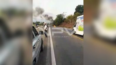 Las autoridades informaron que luego del accidente, la motocicleta comenzó a incendiarse y es que momentos antes al circular sobre la carretera federal 200, se había estrellado contra la rastra de un tractor, lo que provocó que su conductor saliera volando y la motocicleta comenzara a incendiarse.