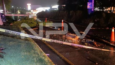 Informa el oficial que el accidente ocurrió debido al parecer al exceso de velocidad y el pavimento mojado, que fue lo que causó que el conductor del auto Jetta, perdiera el control y terminara impactándose contra dos palmeras y una lámpara de alumbrado Público del camellón central.