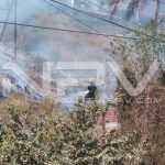 Voraz incendio de pastizal que se registró en el cerro de La Cruz de Huanacaxtle, por poco y alcanza algunas viviendas que estuvieron a punto de quemarse, de no ser por la oportuna llegada de los elementos de Bomberos, quienes fueron solicitados por vecinos del lugar, para que apagaran el incendio, del cual se desconoce qué fue lo que lo originó.
