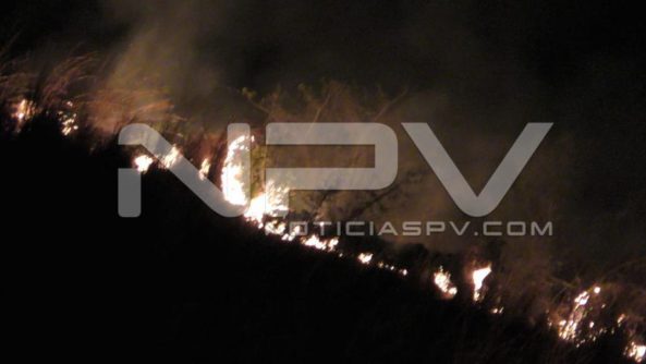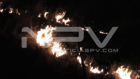 Los hechos fueron reportados a la base de Protección Civil Municipal, minutos antes de la media noche de este miercoles, siendo informados los elementos de Bomberos, que por el rumbo de donde se ubica el rancho » Ya Que’ en el poblado de Valle de Banderas, se estaba registrando un incendio forestal que se apreciaba muy fuerte, por lo que solicitaban la presencia de los Bomberos en el lugar.