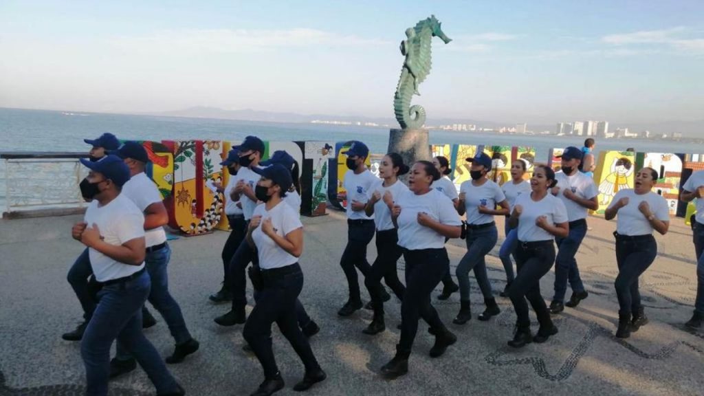 Cadetes de la 17ª Generación del Curso de Formación Inicial para Policía Preventivo, impartido a través de la Academia Regional de Policía y Tránsito de Puerto Vallarta, continúan con su preparación física al realizar una serie de entrenamientos en diversas zonas turísticas de la ciudad.