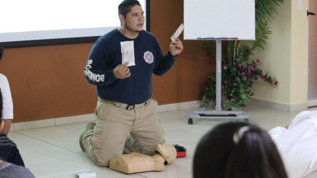 Edgar Moreno, responsable de dicha capacitación, señaló que se abordan los temas de control de hemorragias, resucitación cardiopulmonar (RCP), desobstrucción de la vía aérea, fracturas, inmovilización y uso del DEA (Desfibrilador Externo Automático).
