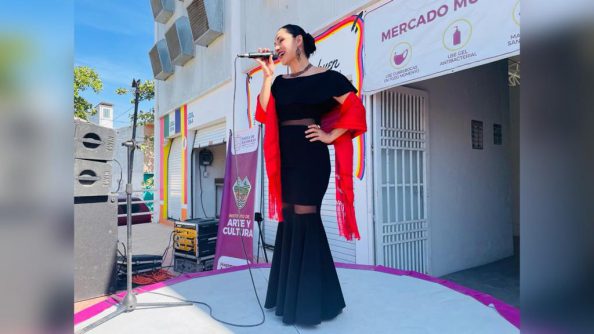 Creando espacios para fomentar las diferentes expresiones artísticas, este viernes el escenario fue el mercado municipal, para también alegrar a los presentes con la voz de Azucena Campos y la música tradicional, además de poder apreciar la galería de cuadros que se han trabajado en el taller de pintura en donde niñas, niños y jóvenes, los días lunes, miércoles y viernes aprenden gratuitamente en la Casa de la Cultura, ex Velatorio municipal.