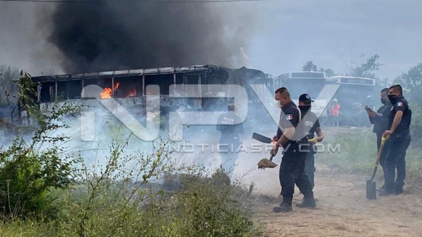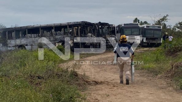 Fueron cuatro unidades de Transportes Turísticos Flamingos los que ardieron en llamas, luego de que provocaron un incendio de pastizal en un lote baldío