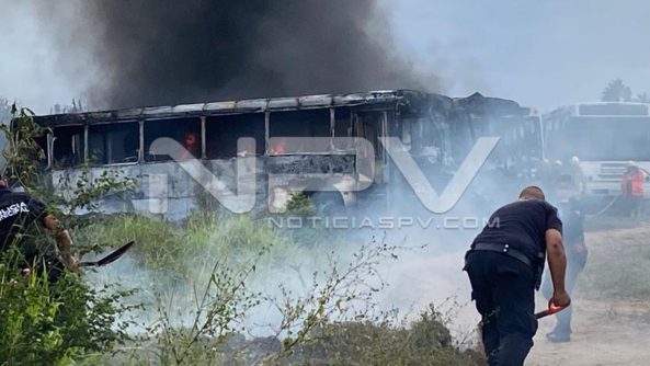 Fueron cuatro unidades de Transportes Turísticos Flamingos los que ardieron en llamas, luego de que provocaron un incendio de pastizal en un lote baldío