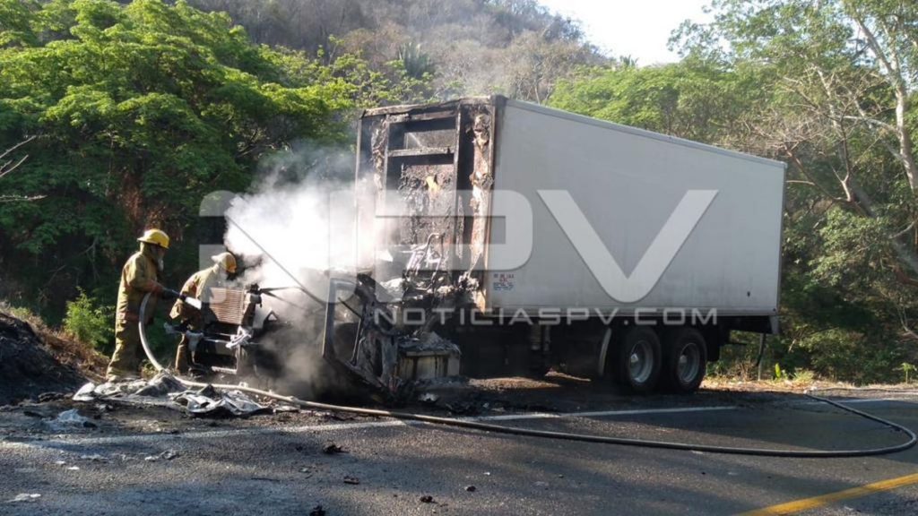 Hasta ese sitio se dirigieron los elementos de Bomberos de Bahía de Banderas, a bordo de un camión moto bomba y una ambulancia, donde ya se encontraban los oficiales de la Guardia Nacional (División Caminos), abanderando el área donde se apreciaba también el personal de Protección Ciudadana y Bomberos de Nayarit, combatiendo el fuego que estaba en libre combustión arrasando con el motor y la cabina de un camión de carga que transportaba carne.