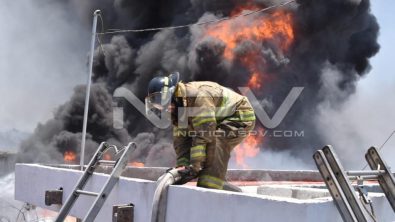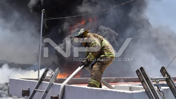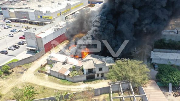 Voraz incendio se registra en estos momentos en la ciudad de Tepic, Nayarit, en donde el personal del cuerpo de Bomberos tanto del municipio como del Estado, trabajan para tratar de controlar el incendio en una bodega de aceite.