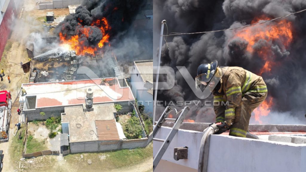 Voraz incendio se registra en estos momentos en la ciudad de Tepic, Nayarit, en donde el personal del cuerpo de Bomberos tanto del municipio como del Estado, trabajan para tratar de controlar el incendio en una bodega de aceite.