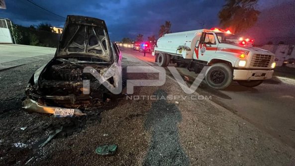 Comunicado .- En atención a un reporte recibido a la línea de emergencias 9-1-1, donde se mencionara el incendio de un vehículo en la localidad de San José del Valle del municipio de Bahía de Banderas.