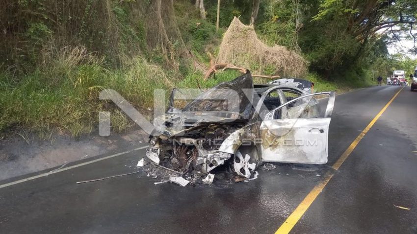 La mañana de este sábado se registró un percance vial sobre la carretera federal 200, poco antes de llegar al poblado de El Guamúchil, en donde un vehículo se incendió por completo, lo que provocó el cierre total de esta vía de comunicación.