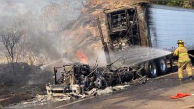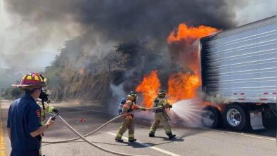 Al arribo del lugar, se percataron que las llamas del incendio se habían extendido al grado de consumir una gran parte del camión, además de extenderse a las faldas del cerro.