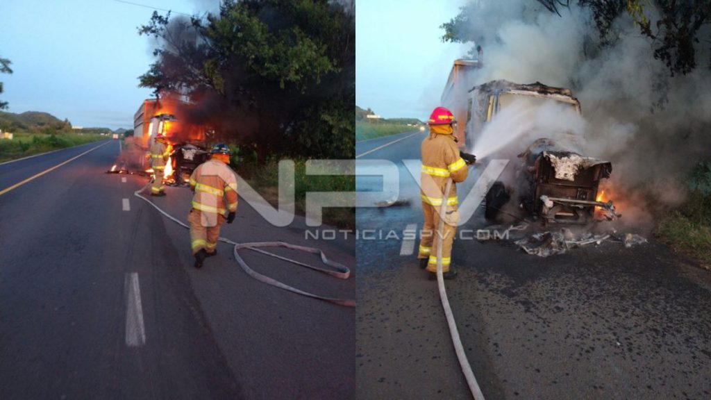 Personal de Protección Ciudadana y Bomberos, Policía Municipal de Santa María del Oro y Guardia Nacional acudieron al lugar, teniendo a la vista un tracto camion que se encontraba siendo consumido por el fuego.