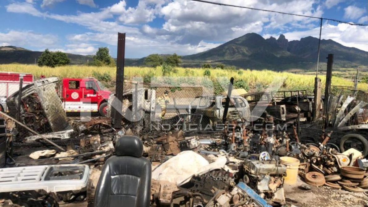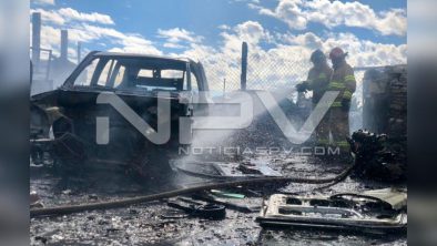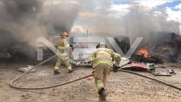 Bomberos del estado combaten incendio en bodega de metales ubicada adelante del poblado de San Cayetano