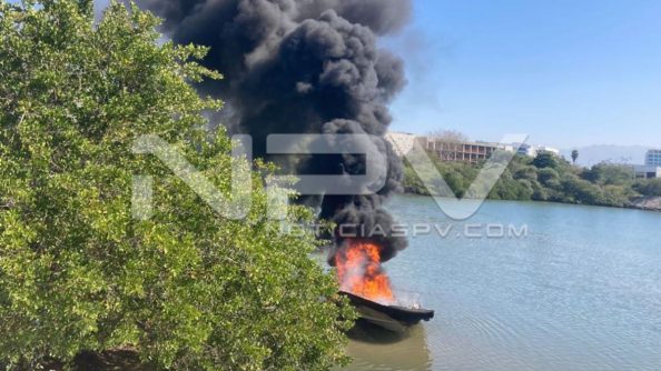 Por causas hasta el momento desconocidas, la tarde de este sábado se quemó una embarcación que se encontraba en el río Ameca, en Bahía de Banderas.