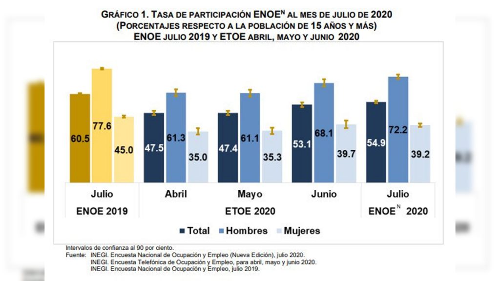 En ese sentido, el organismo consideró que los datos reportados por la ENOEN de julio –cuyo levantamiento fue presencial y telefónico– confirman la recuperación de la ocupación y el empleo iniciada en junio, principalmente impulsada por la reapertura gradual de los negocios y empresas en actividades económicas no esenciales.