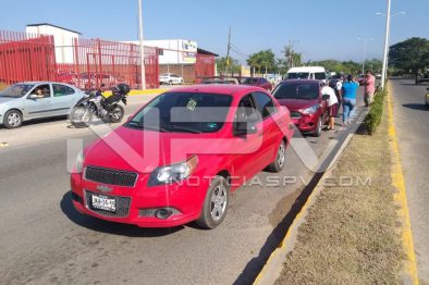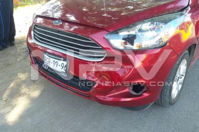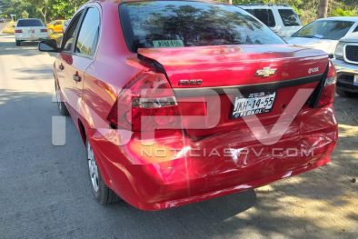 La fémina chocó por alcance a otro vehículo de la marca, Chevrolet, tipo Aveo, de color rojo, con placas JKH-14-55, del Estado de Jalisco, que era conducido por una persona del sexo masculino, los cuales afortunadamente resultaron ilesos, reportándose solo daños materiales.