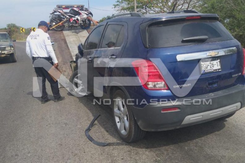 Dos lesionados y cuantiosos daños materiales fue el saldo que dejó el accidente registrado entre una motocicleta y una camioneta Trax, ocurrido por la carretera del camino viejo, en el tramo de Valle de Banderas a Bucerías, hasta donde arribaron los agentes de la Policía vial para tomar nota y los elementos de los servicios de emergencias a brindarle los primeros auxilios al conductor de la moto, quien fue trasladado a un hospital.