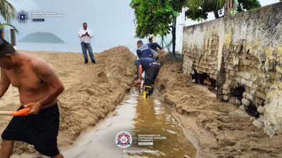 Comunicado.-El Gobierno del Estado de Nayarit a través de la base regional de Guayabitos de Bombero de Nayarit, brindan apoyo ciudadano a vecinos de la colonia Pescadores, donde viviendas resultaran afectadas por el oleaje elevado en la localidad de La Peñita de Jaltemba del municipio de Compostela.
