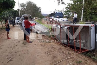 Daños materiales fue el saldo de un accidente ocurrido por la carretera del camino viejo, donde la conductora de una camioneta perdió el control del volante y cayó al canal, donde quedó sobre su costado izquierdo.