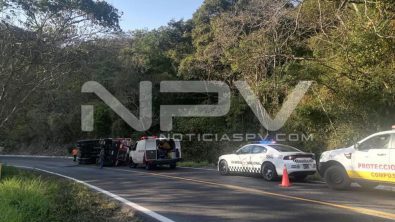 El reporte a los números de emergencia entró poco después de las 4:30 de la tarde de este miércoles, cuando informaban que sobre la carretera federal 200 a la altura del kilómetro 42, un trailer que iba rumbo a Puerto Vallarta, se había volcado en la zona de curvas, pero él mismo estaba fuera de la carretera.