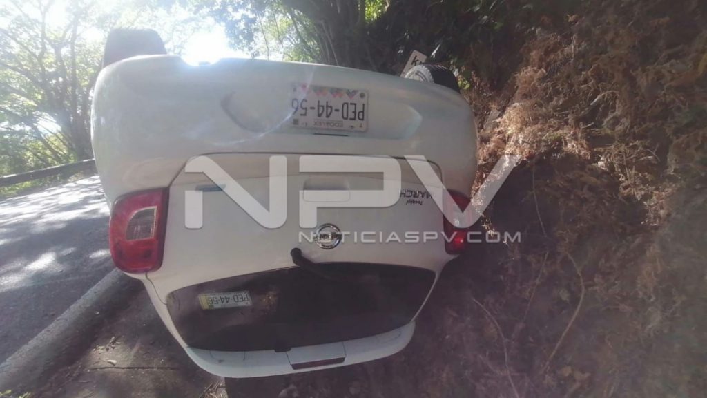 Fue en atención a un reporte a la línea de emergencias del 9-1-1, se atiende hecho de tránsito en donde se localiza un vehículo de la marca Nissan, tipo March en color plata volcado al exterior de la cinta asfáltica, en la cercanía del tramo El Santito, en el municipio de Compostela, informó la dependencia.