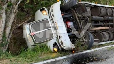 La Secretaría de Seguridad Ciudadana dio a conocer hace unos momentos, que esta mañana de martes se reporta volcadura de trailer por la carretera federal 200, a la altura del kilómetro 46, pasando Compostela, en la zona de curvas.