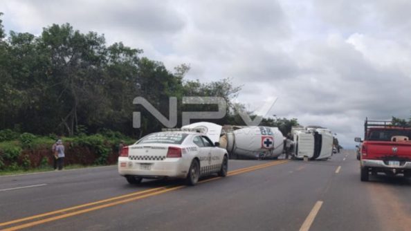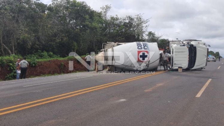 Por causas hasta el momento desconocidas, se registró aparatosa volcadura sobre la carretera federal 200 a la altura del crucero al rancho El Divisadero, cerca de Las Varas dentro del municipio de Compostela, en donde se vio involucrado un trompo que cargaba cemento y el cual es de la empresa Cruz Azul.