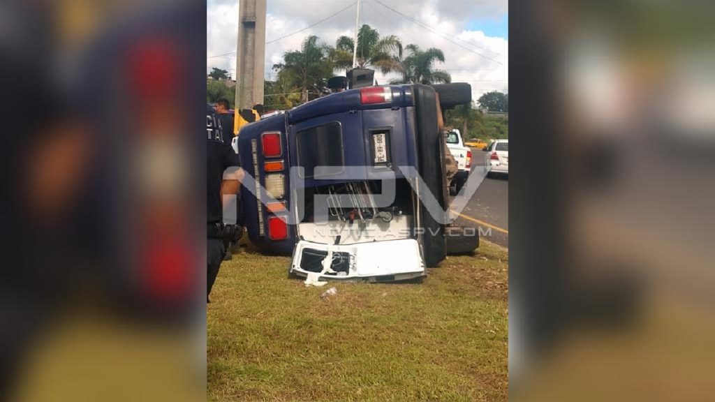 El accidente sucedió cuando intentó salir del libramiento para tomar la Insurgentes, cerca de la hielera El Perico, en Tepic *Cuatro agentes y dos vecinos del poblado de La Fortuna, salieron lesionados