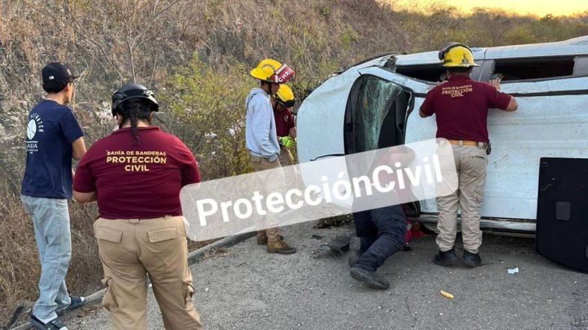Un joven estudiante resultó ileso tras sufrir una volcadura sobre la carretera Punta Mita, luego de que la llanta de su vehículo reventara mientras se dirigía a su domicilio en la colonia Emiliano Zapata, del poblado Higuera Blanca.